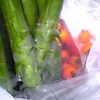 道の駅で買ったキュウリとプチトマト。